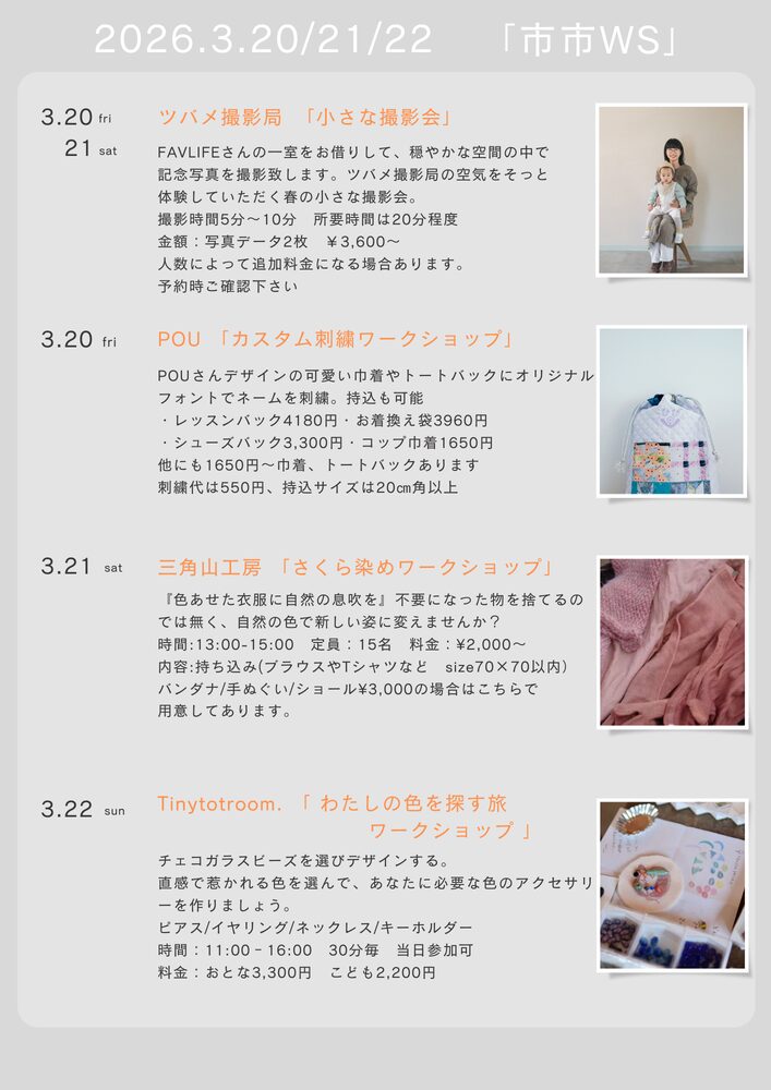 3/20(金)ー22(日) 11:00-16:00 FAV LIFE & La Feuille による「市市」開催